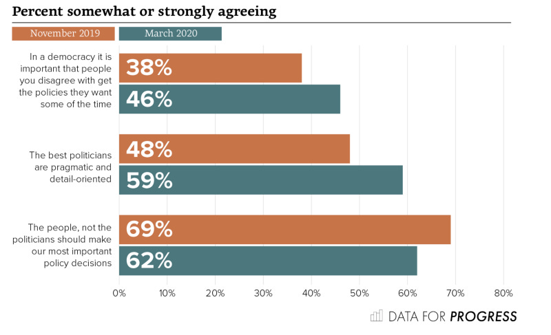 This becomes evident empirically according to the survey conducted by Data for Progress, from which the public appears to be more open to “bipartisan approaches” to governance.
